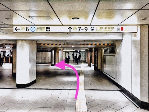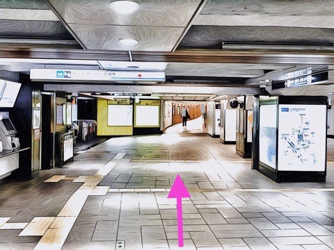 7号車2番扉(先頭から7両目)付近のエスカレーターへ