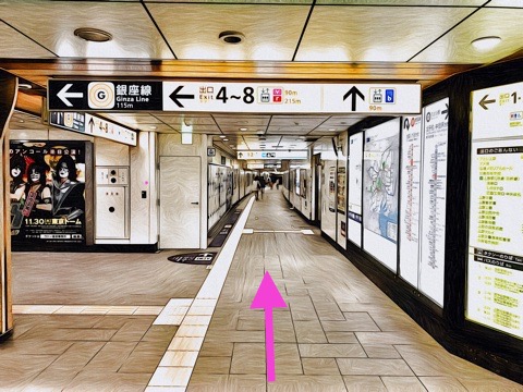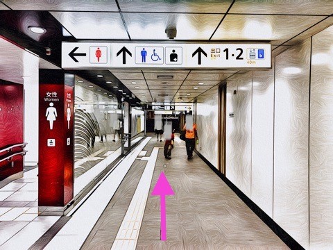 通路に沿って右前方へ