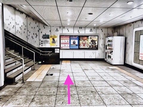 改札を出て前方へ