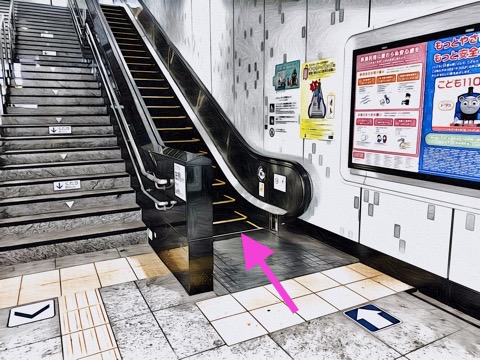 7号車2番扉(先頭から7両目)付近のエスカレーターへ