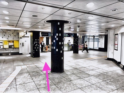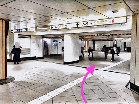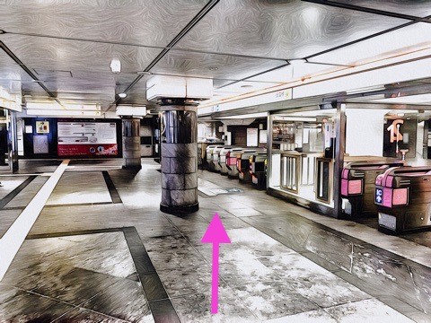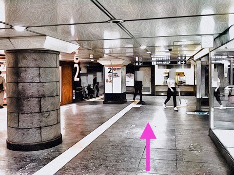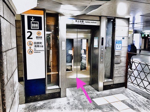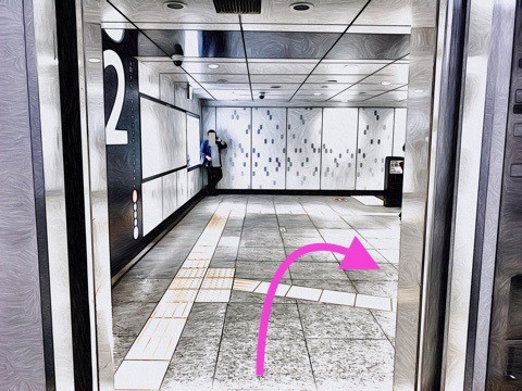 7号車4番扉(先頭から7両目)付近のエレベーターへ