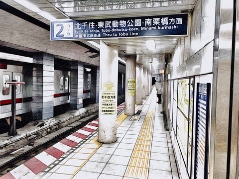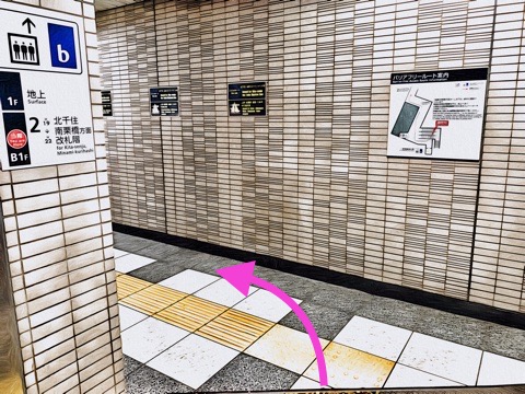 北千住方面行きホーム(1号車1番扉/先頭から1両目)