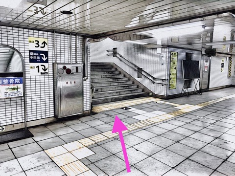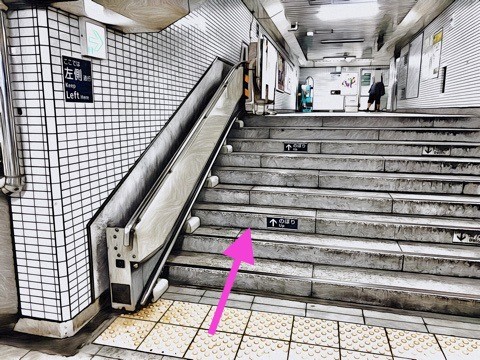 階段昇降機を降り右前方の階段昇降機へ