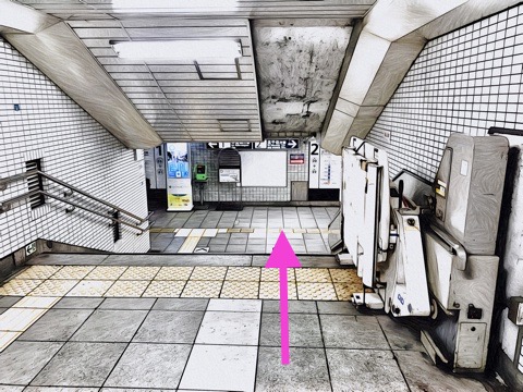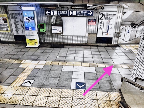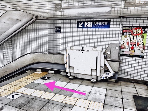 北千住方面行きホーム(1号車1番扉/先頭から1両目)