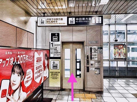 エレベーターを降り前方のエレベーターへ