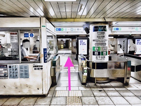 前方の改札へ