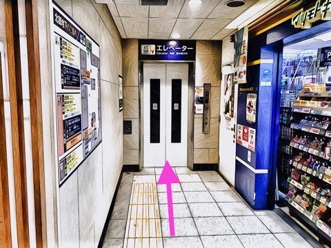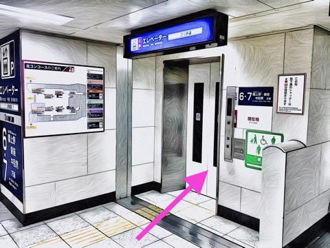 出入口5のエレベーターで改札階へ