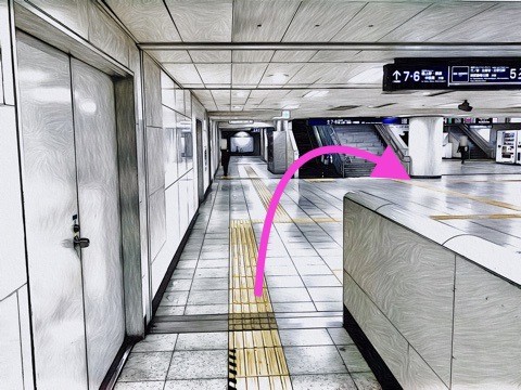 通路に沿って右へ
