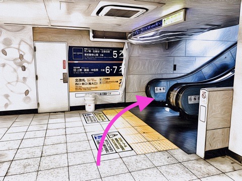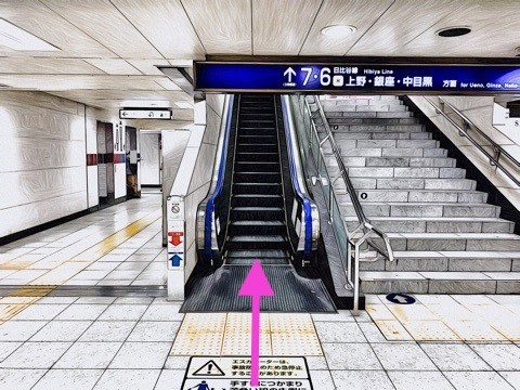エスカレーターを降り前方のエスカレーターへ