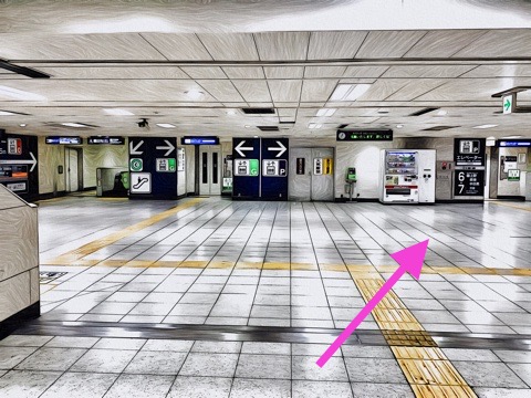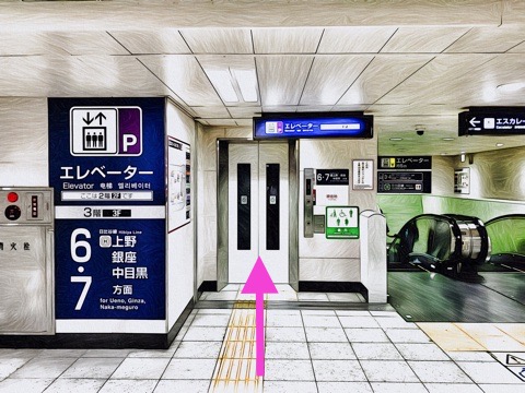 6,7番線ともに中目黒方面行きホーム(1号車1番扉/先頭から7両目)