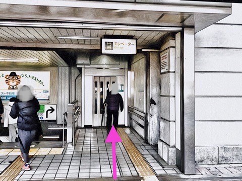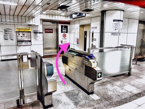 改札を入り右のエレベーターでホーム階へ