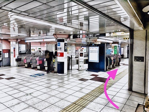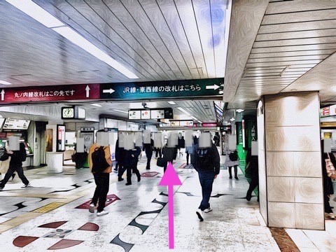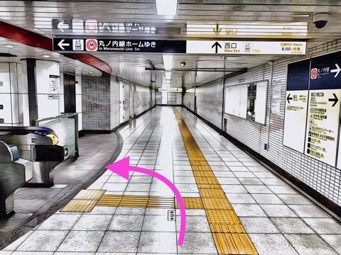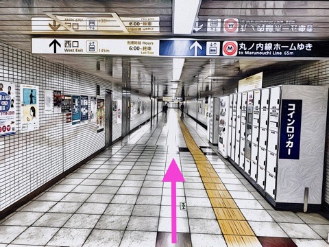 前方の丸ノ内線改札手前の通路を右へ