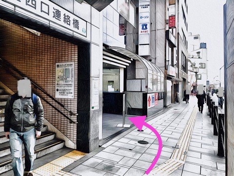西口連絡橋の横の通路を左へ