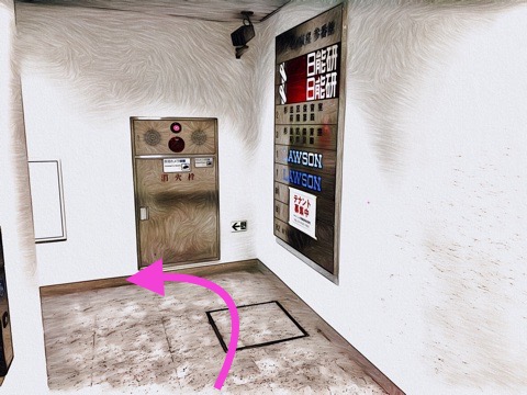 通路に沿って左前方へ