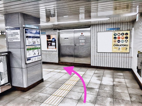 改札を入り右のエレベーターでホーム階へ