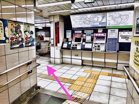 改札を入ると荻窪方面行きホーム(2号車2番扉/先頭から2両目)