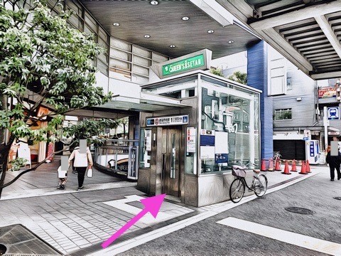 出入口エレベーターで改札階へ