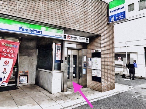 出入口1のエレベーターで改札階へ