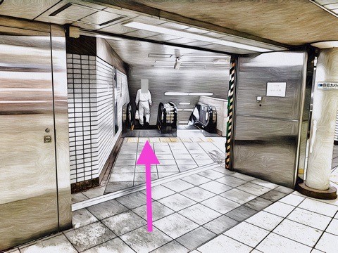 前方のエスカレーターへ