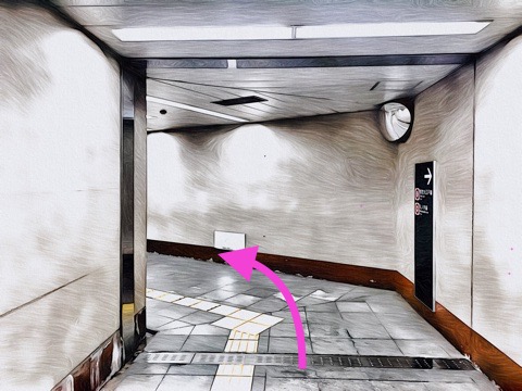 エスカレーターを降り前方へ