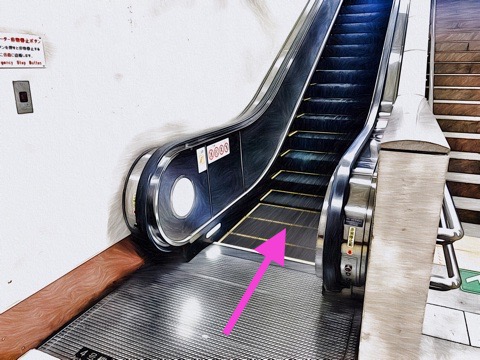 6号車3番扉(先頭から6両目)付近のエスカレーターへ