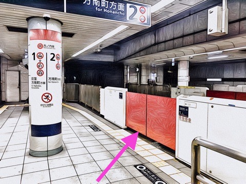 ホーム右が方南町方面行き(6両編成:1号車1番扉/先頭から1両目)