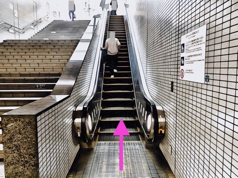 5号車1番扉(先頭から2両目)付近のエスカレーターへ