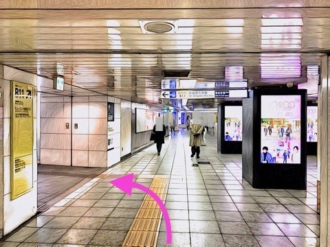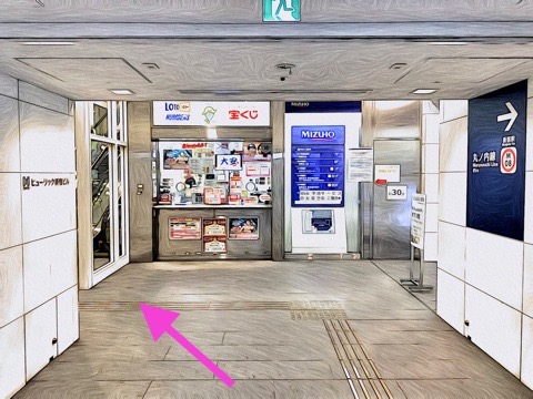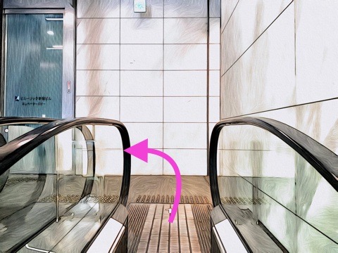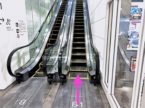 6号車3番扉(先頭から6両目)付近のエスカレーターへ