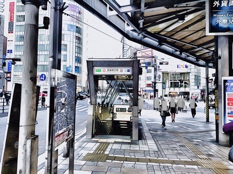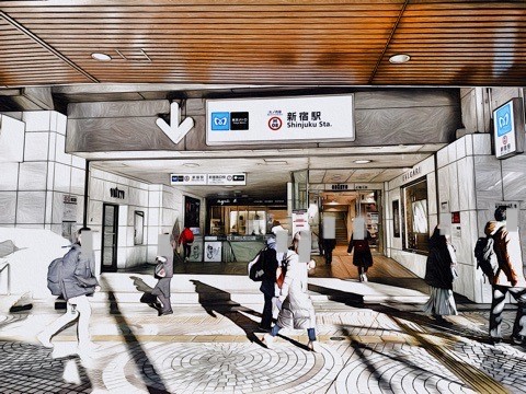 京王百貨店 / 工学院大学 / 新宿駅(京王線・京王新線) / 新宿駅(都営線) / 新宿駅西口地下広場 / 新宿郵便局 / バスのりば / ルミネ1