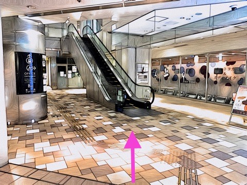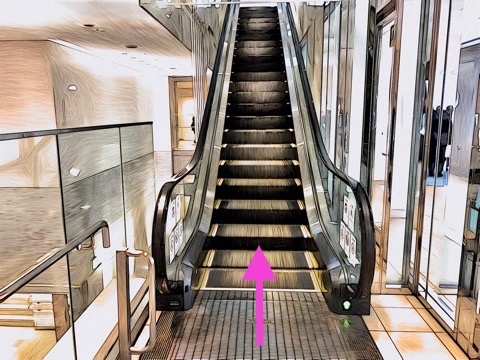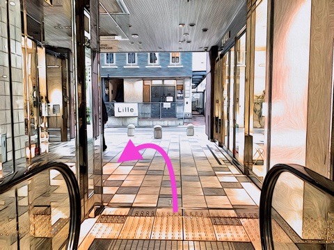 4号車1番扉(先頭から3両目)付近のエスカレーターへ