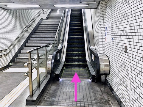 前方のエスカレーターへ
