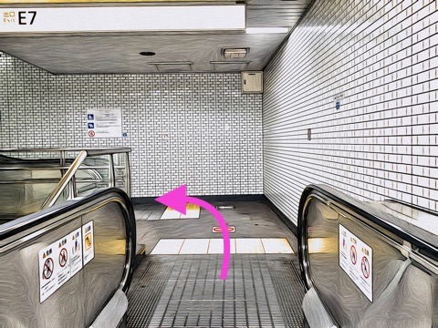 4号車1番扉(先頭から3両目)付近のエスカレーターへ
