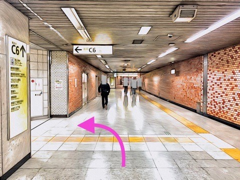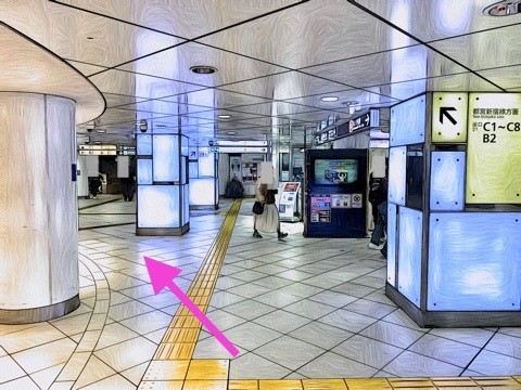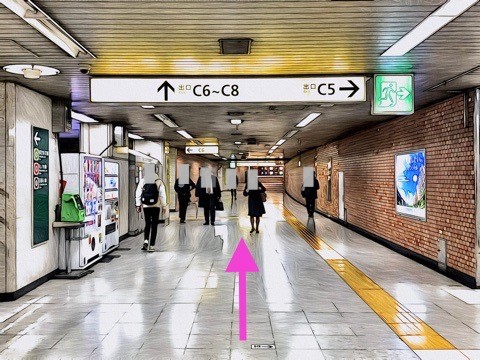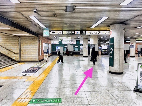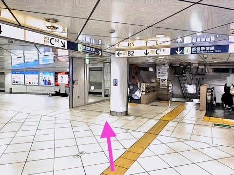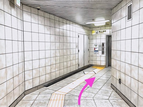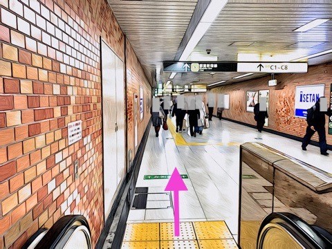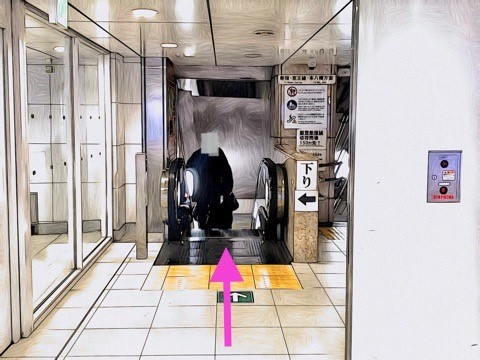 4号車1番扉(先頭から4両目)付近のエスカレーターへ