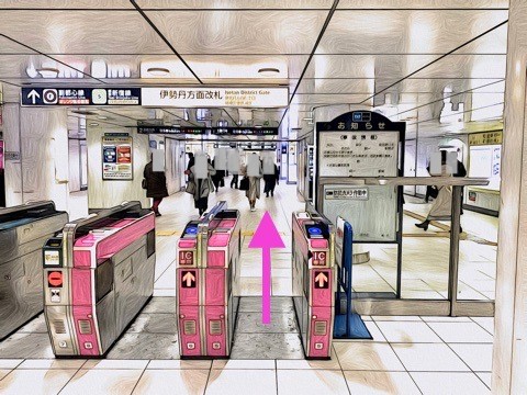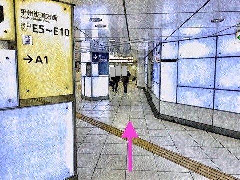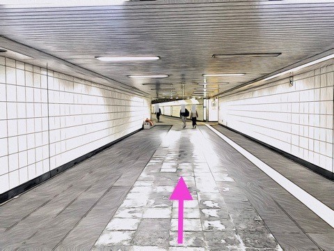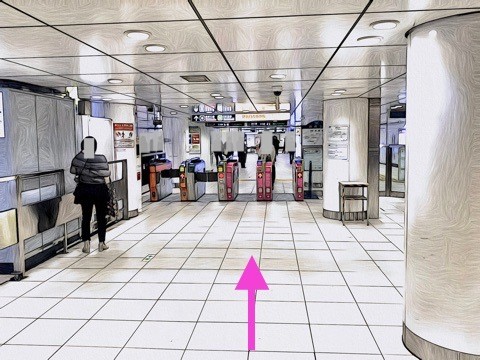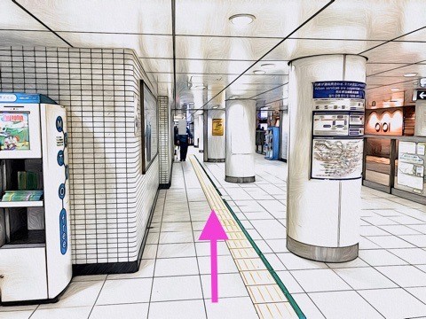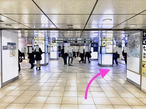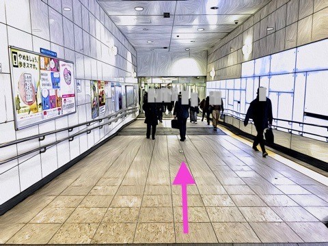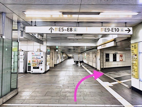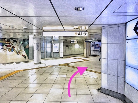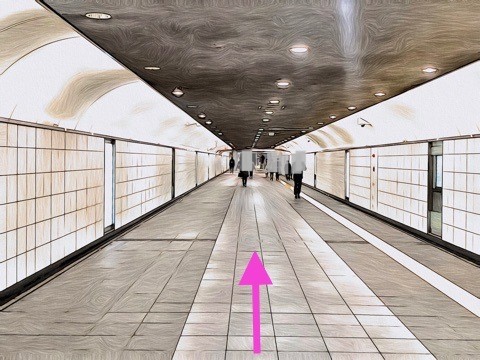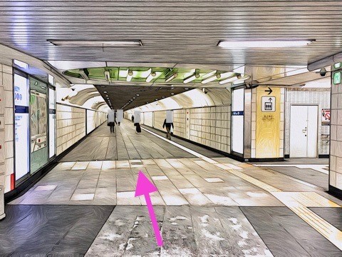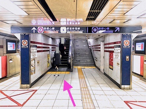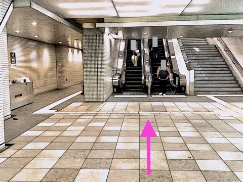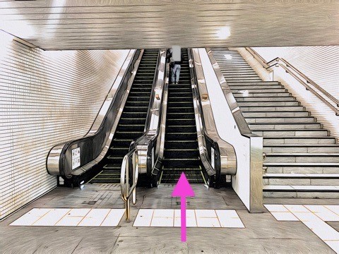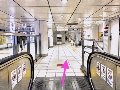 4号車1番扉(先頭から4両目)付近のエスカレーターへ