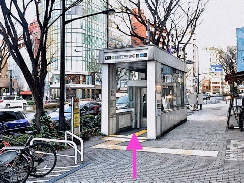 出入口C6のエレベーターへ
