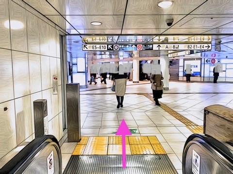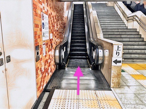 前方のエスカレーターへ