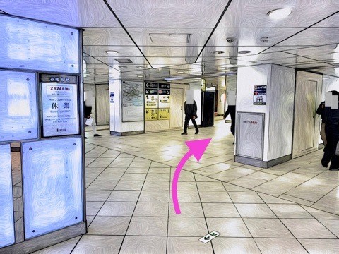 1番線が荻窪方面行きホーム(1号車2番扉/先頭から1両目)
