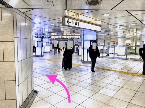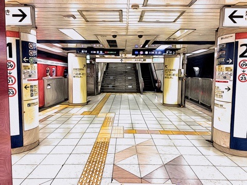 1番線が荻窪方面行きホーム(1号車2番扉/先頭から1両目)