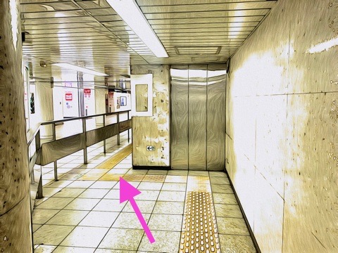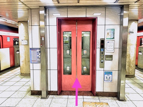 1号車1番扉(先頭から6両目)付近のエレベーターで改札階へ