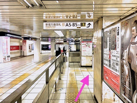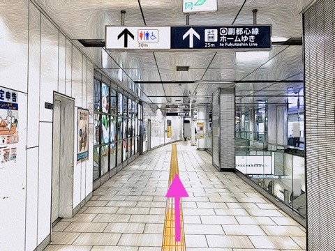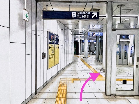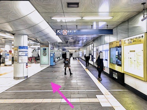 改札を入り前方へ