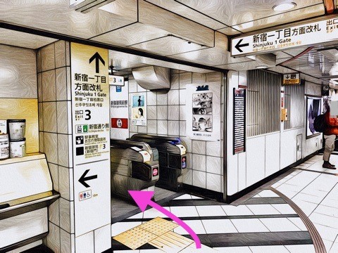 1号車3番扉(先頭から6両目)付近の改札を出る