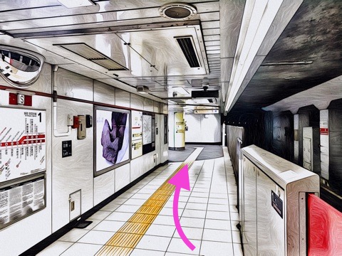 1号車1番扉(先頭から1両目)を出て右へ