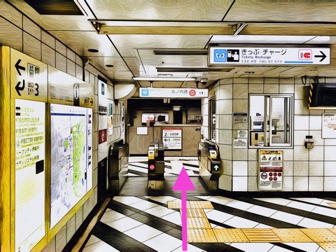 エレベーターを降り前方の改札を入る