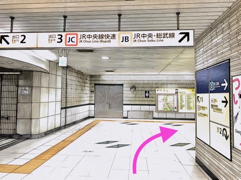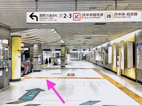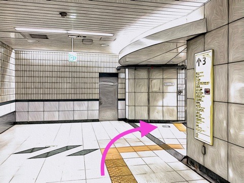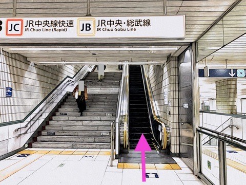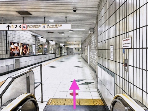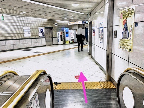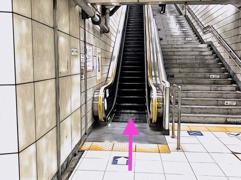 1号車1番扉(先頭から1両目)付近からエスカレーターへ