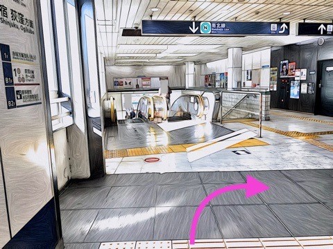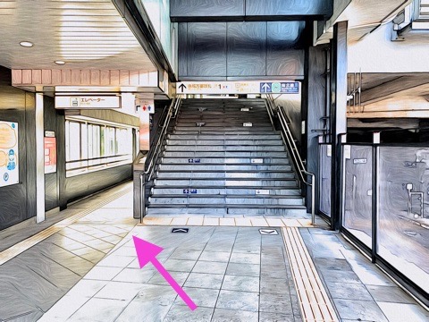 1号車1番扉(先頭から1両目)付近からエスカレーター方向へ