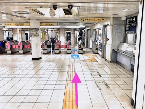 1号車1番扉(先頭から6両目)付近のエレベーターで上の階へ
