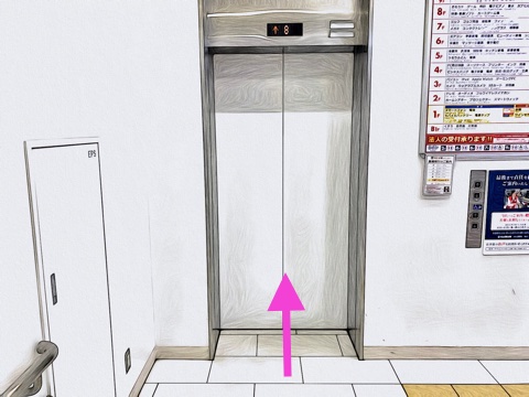 エレベーターを降り左へ