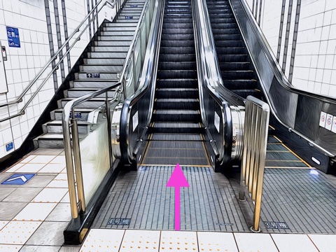 前方のエスカレーターへ