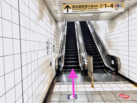 前方のエスカレーターへ
