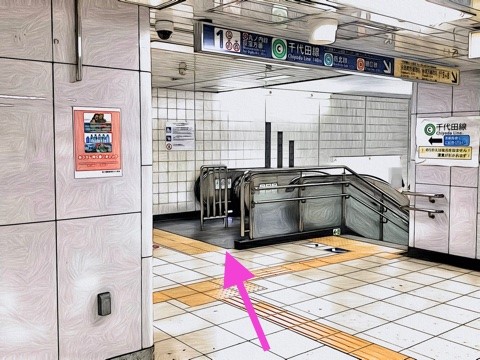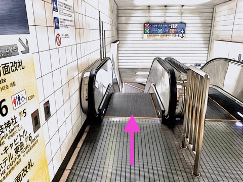 4号車3番扉(先頭から3両目)付近から左のエスカレーターへ